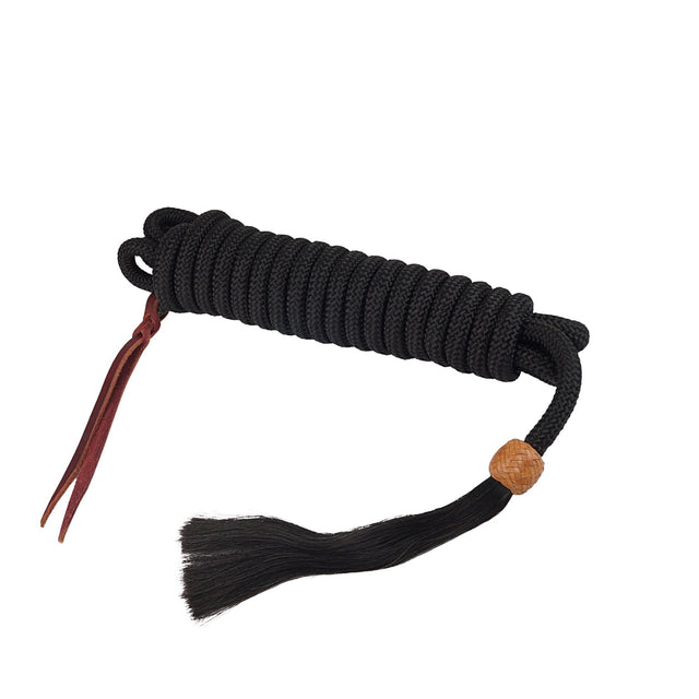 Mecate aus Nylon mit Pferdehaar-Tassel und Lederende. Die Mecate hat eine Stärke von 5/8" und eignet sich somit hervorragend für alle Bosals mit der selben Stärke.