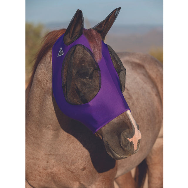 Die Comfort Fit Fliegenmaske von Professional's Choice besteht aus einem extrem dehnbarem Lycra Material und einem stabilem Netzgewebe im Bereich der Augen und Ohren. Die Augenpartie ist mit Abnähern versehen, sodass sich das Netzmaterial aufwölbt.