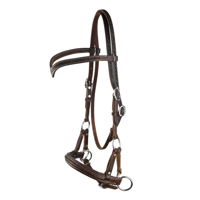 Schickes Sidepull mit V-Stirnriemen und weich gepolstertem Nasenriemen. Der Nasenriemen ist mit Chicago-Schrauben befestigt und kann bei Bedarf ausgetauscht werden. Das Sidepull ist aus hochwertigem, argentinischen Rindsleder gefertigt. Es ist wahlweise mit oder ohne Punzierung erhältlich.
